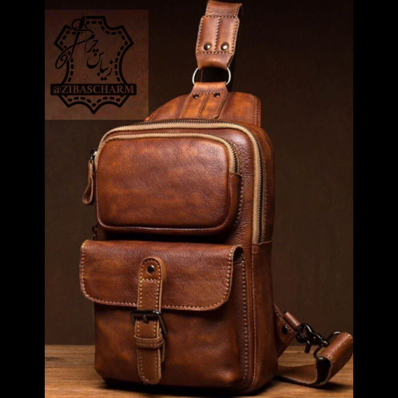کوله مدل آمریکایی چرم طبیعی دستدوز زیباس چرم