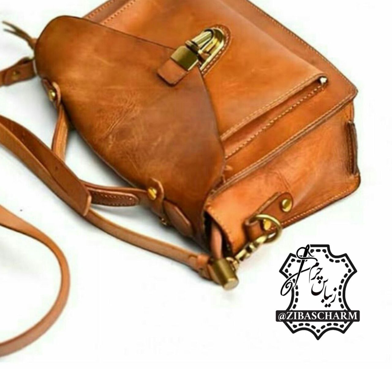 کیف دوشی زنانه چرم طبیعی دست دوز زیباس چرم