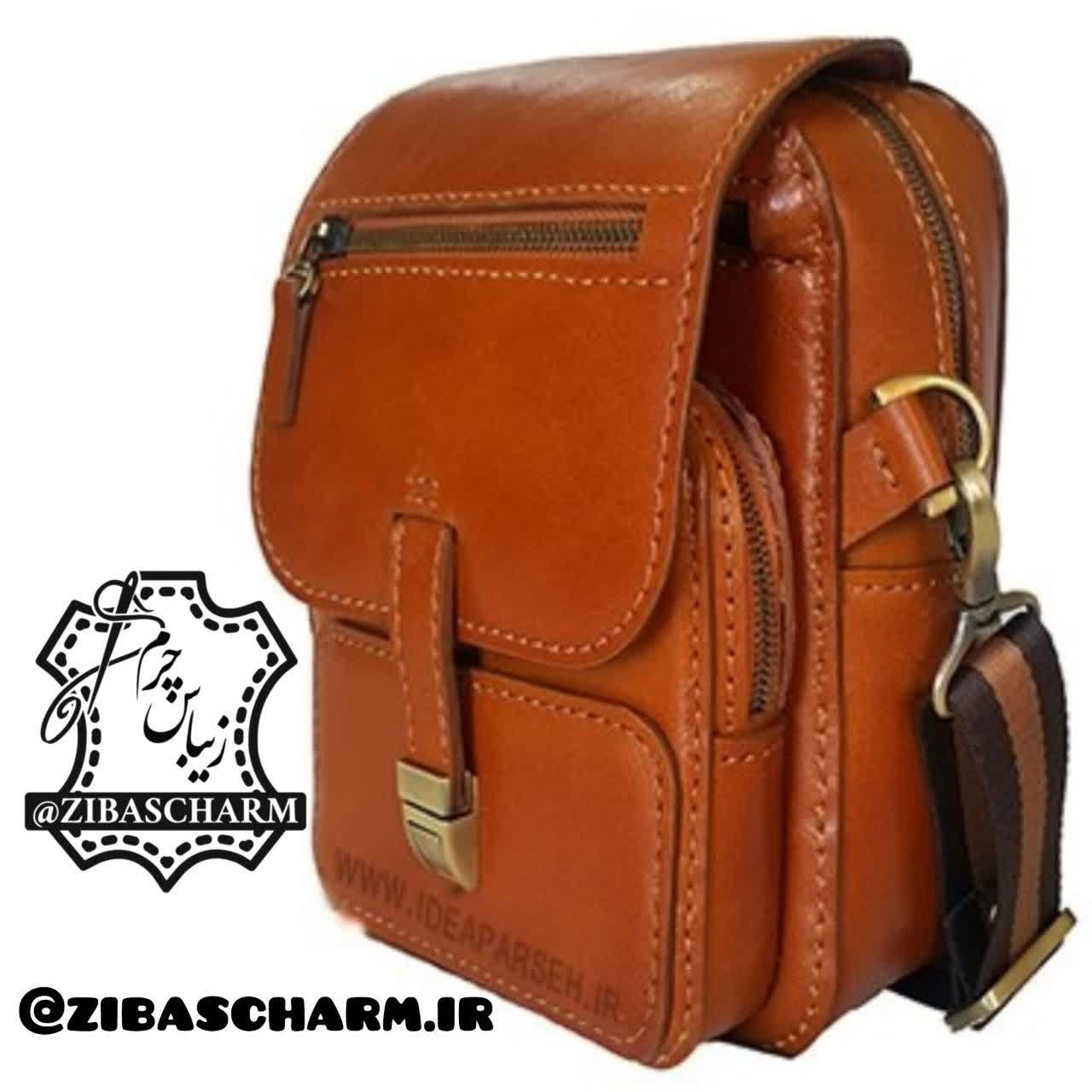 کیف دوشی حمایلی چرم طبیعی دستدوز زیباس چرم A11